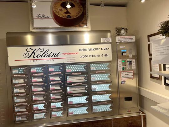 Sie können kleine und große Original Villacher Torten in unserem praktischen Torten-Automaten zu jeder Tages- und Nachtzeit erstehen.